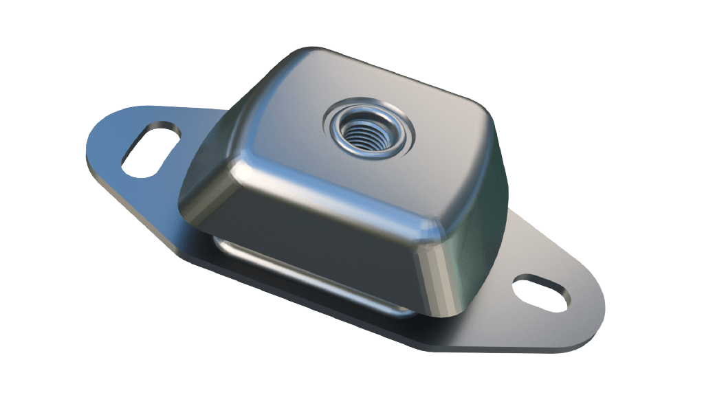 The Cushyfloat mount is a general purpose unit designed to provide effective isolation of vibration and noise arising from both static and mobile equipment. Originally designed for use with marine engines, the Cushyfloat is a simple to install, compact, low profile mounting. It combines 3 way control of the suspended equipment with relatively large static deflections where the rubber is loaded in shear and compression. The design incorporates bump and rebound control features which limits excessive movement under shock loading. Top metal gives protection against oil contamination and the protective finish resists corrosion attack. Propeller thrust on marine applications is accommodated. There are four sizes in the standard range with varying degrees of rubber hardness catering for point loads from 32Kg to 3000kg. Natural frequencies as low as 8Hz are possible