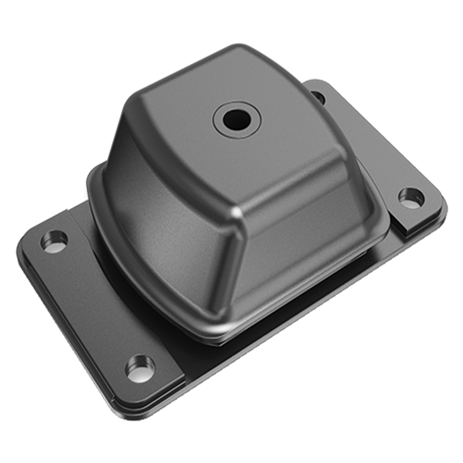 The Cushyfloat mount is a general purpose unit designed to provide effective isolation of vibration and noise arising from both static and mobile equipment. Originally designed for use with marine engines, the Cushyfloat is a simple to install, compact, low profile mounting. It combines 3 way control of the suspended equipment with relatively large static deflections where the rubber is loaded in shear and compression. The design incorporates bump and rebound control features which limits excessive movement under shock loading. Top metal gives protection against oil contamination and the protective finish resists corrosion attack. Propeller thrust on marine applications is accommodated. There are four sizes in the standard range with varying degrees of rubber hardness catering for point loads from 32Kg to 3000kg. Natural frequencies as low as 8Hz are possible
