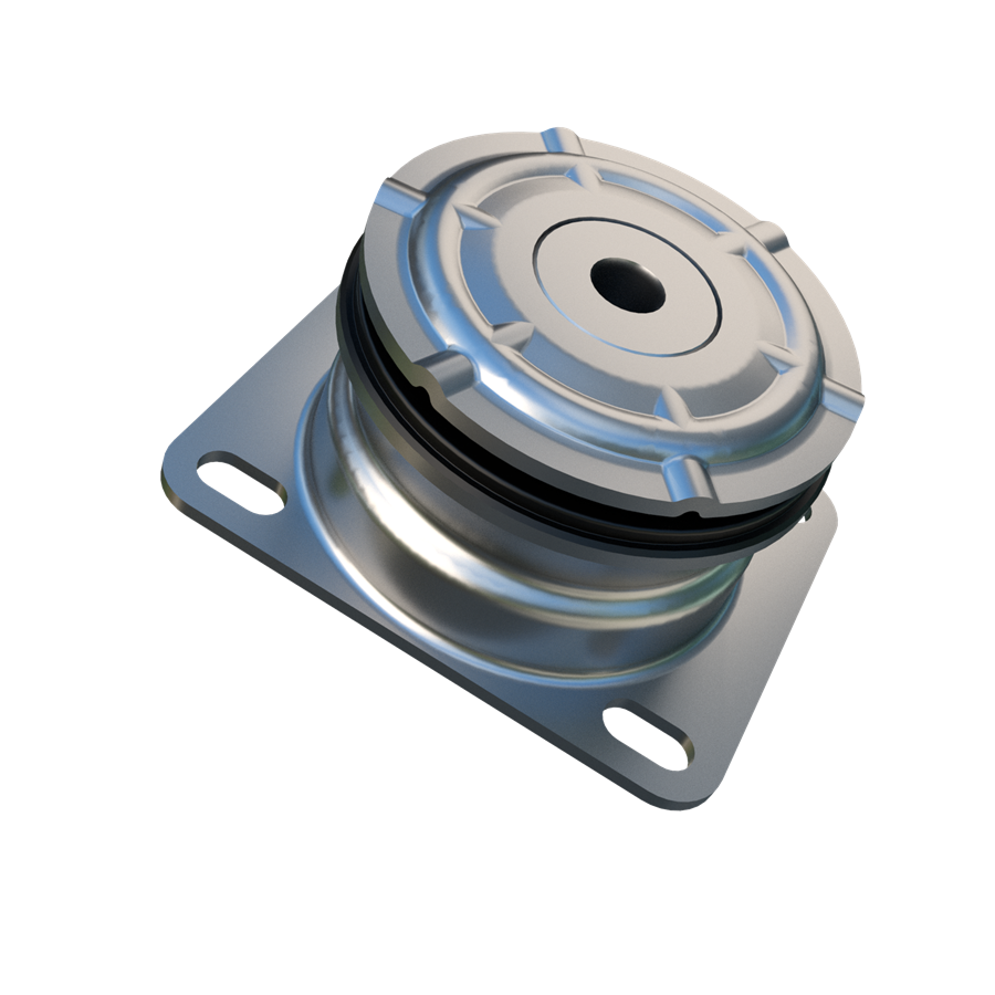 The metacone product range is designed for high load capacity with relatively large static deflections. The high loading for a given size is achieved by utilizing the rubber to best advantage in shear and compression. Typically the mountings are assembled with overload and rebound washers to control and limit movement of the suspended equipment under shock loads. Centre fixing bolts should be torque tightened to the recommended values. Their compact fail-safe design is available for a wide range of loadings, with in some cases, alternative fixings. Cut-outs in rubber sections on various sizes provide different vertical/horizontal stiffness ratio.