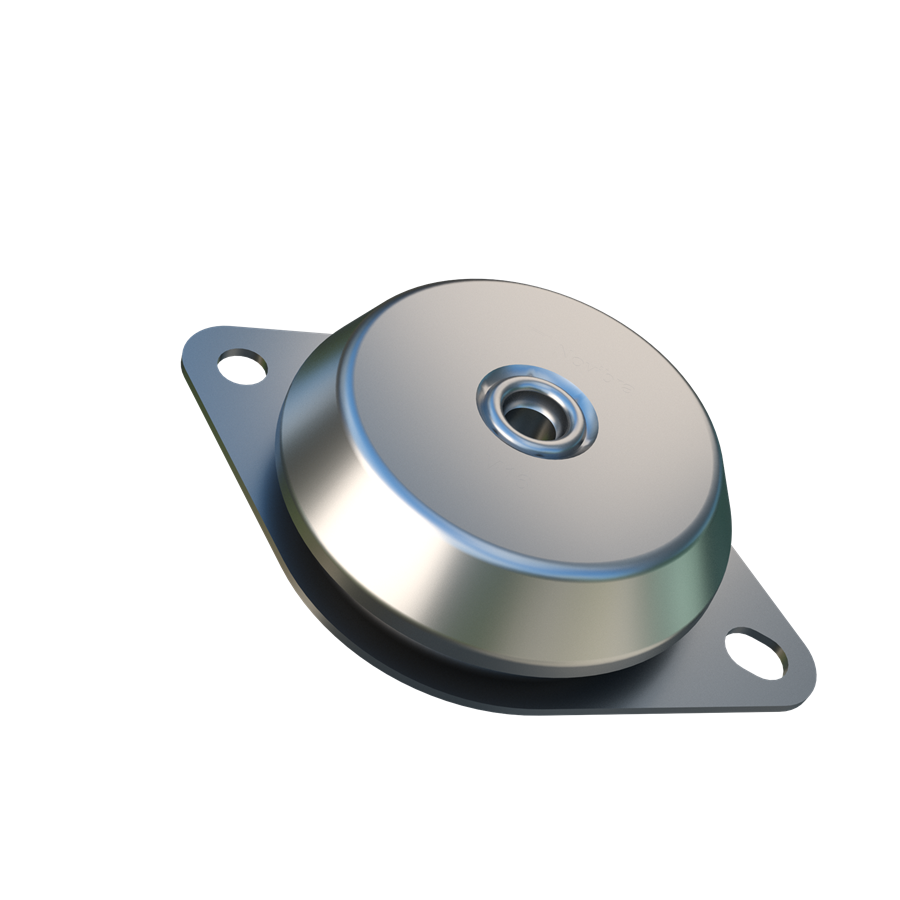 RA mount uses the rubber profile in shear and compression to obtain good vertical flexibility with the advantage of horizontal stability. For normal speeds of approx. 1500 RPM, the RA provides a degree of isolation of 75-85%. For better isolation, the alternative RAEM or M-Series can be chosen.