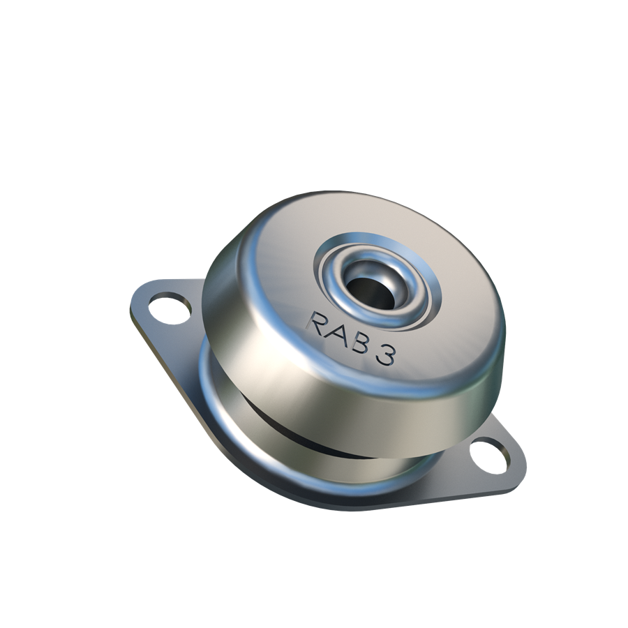 Similar in design to the RA and RAEM range, the RAB uses rubber in shear and compression for optimum stiffness characteristics and horizontal stability. Especially effective on small 1, 2 and 3 cylinder diesel engines where the special compound employed provides effective isolation of vibration while eliminating much of the excessive movement normally associated with 1-3 zinc plated cylinder engines.