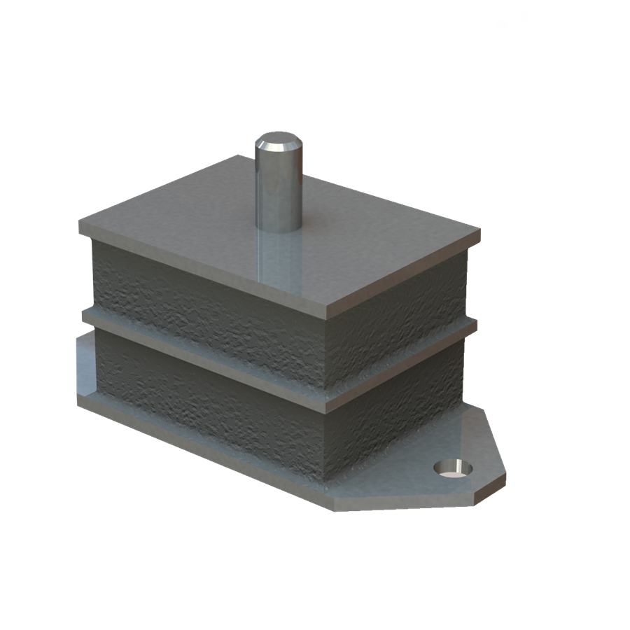 The metal interleaf incorporated in the design provides a higher compression to shear stiffness ratio, thereby increasing the load capacity in the compression or combined compression and shear modes. The 17-1780 engine mounting features a void in the rubber section to allow the use of a central snubber device. 17-1780 can be fitted with a rebound washer for mobile applications.